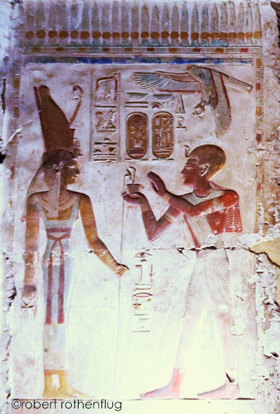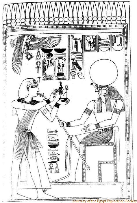 Paroi de gauche : le roi présente la Maât à Rê-Horakhty