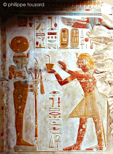 Paroi sud : e roi offre le vase Nemset à Mout.