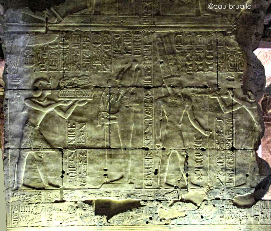 Registre du haut (vue manquante) : à droite, le roi adore Amon-Rê et à gauche, il fumigène de l'encens pour Osiris.