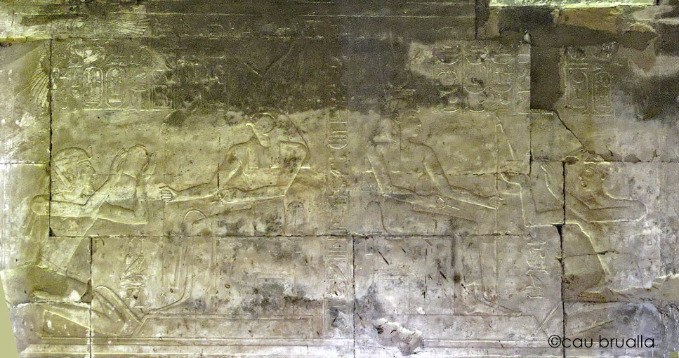 À droite, Sethy purifie 4 fois Isis. La déesse lui donne tous les pays et toute joie.