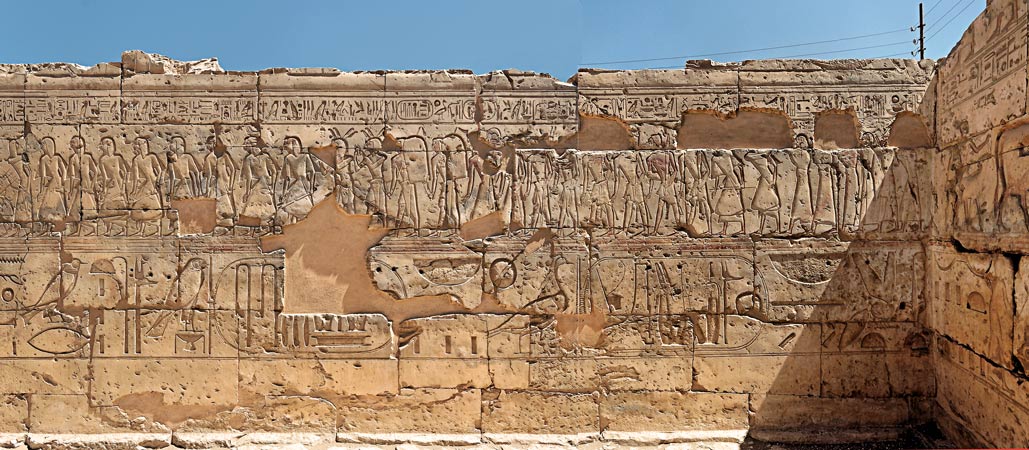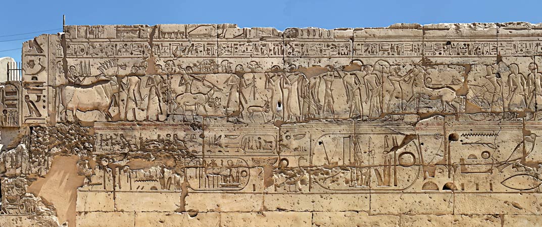 roi. (cf. Mariette). En dessous, une inscription énorme de Ramsès IV. La scène se continue ci-dessous.