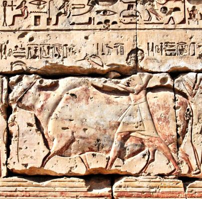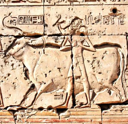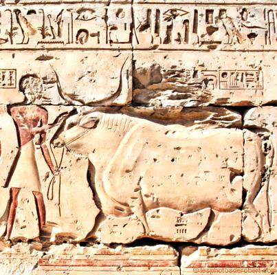 Remarquez que les boeufs sont bien gras, ayant été engraissés spécialement pour le sacrifice (pour les boeufs en Égypte, voir la biblio).
