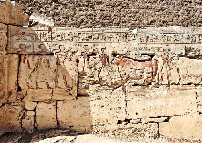 Le mur situé au nord comporte un scène complète d'animaux qui arrivent en procession devant quatre prêtres, procession suivie de scènes de découpes de pièces de boeufs pour le sacrifice. Le premier prêtre est chargé d'enregistrer les offrandes. Le second offre l'encens devant la procession. Le troisième est en charge du temple. Le quatrième est le scribe du temple.(Mariette)