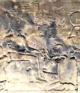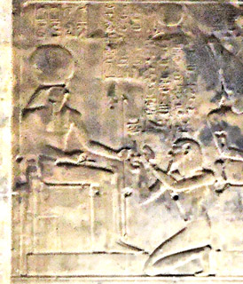Scene 9 : Entering the naos (containing the God's statue) The king kneels and presents God with incense.