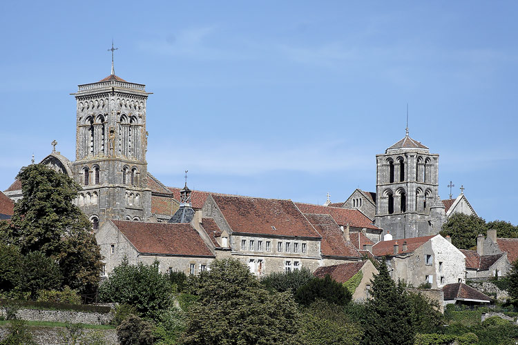 Construite au sommet d'une colline, la basilique est visible des kilomètres à la ronde. C'est en 861 que des moines bénédictins s'y installent. Ensuite, plusieurs églises s'y succèdent. Avec les "miracles" dus aux reliques de Marie-Madeleine, les pèlerins affluent et dès 1096, la décision est prise par l'abbé Artaud de construire une vaste basilique. A la suite d'un terrible incendie en 1120, qui coûta la vie à 1200