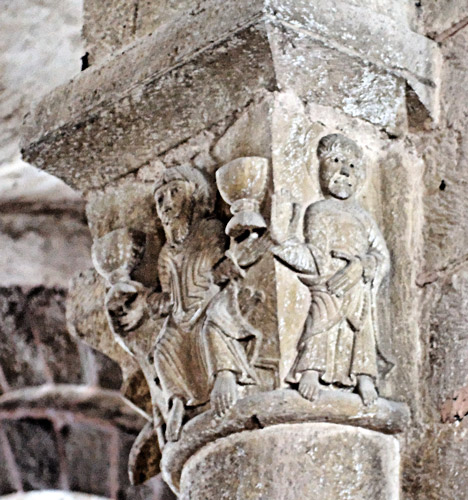 Un autre chapiteau parmi les plus anciens : représenterait-il l'ascension d'Alexandre le Grand enlevé par deux aigles ? (art-roman.net)
