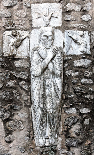 Le monument funéraire de Guillem Gaucelmus : Ce gisant, (vers1211), est encastré dans le mur méridional du parvis de l'ancienne abbatiale d'Arles-sur-Tech. Il se compose de 4 blocs en marbre blanc, formant une croix. Le chevalier est vêtu d'une tunique et d'un manteau aux plis serrés, caractéristiques du sculpteur. On peut remarquer aussi la facture des anges. Le personnage est identifié par une inscription sur le bloc supérieur, de part et d'autre de la main de Dieu posée