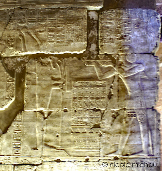 Le roi présente 3 vases d'offrande à Osiris qqui lui donne toute bravoure et toute victoire entre autres.
