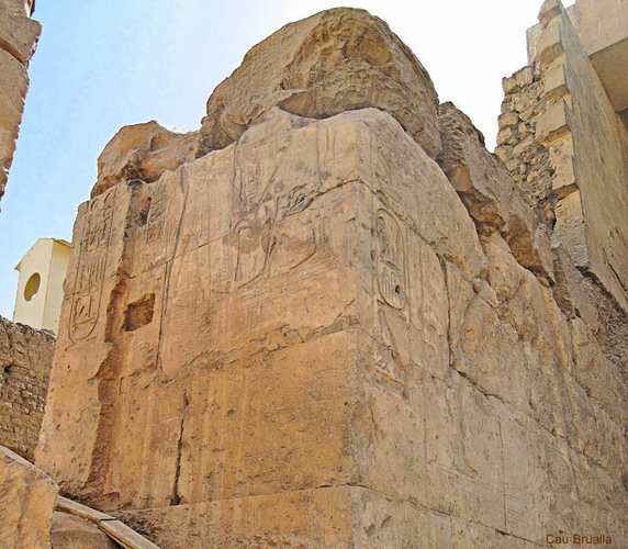 Porte du mur sud : dans l'épaisseur de la porte, Ramsès II à gauche fait des offrandes à Sethy 1er à droite. Les deux titulatures permettent d'identifier les deux rois. Ramsès II est suivi de son ka.