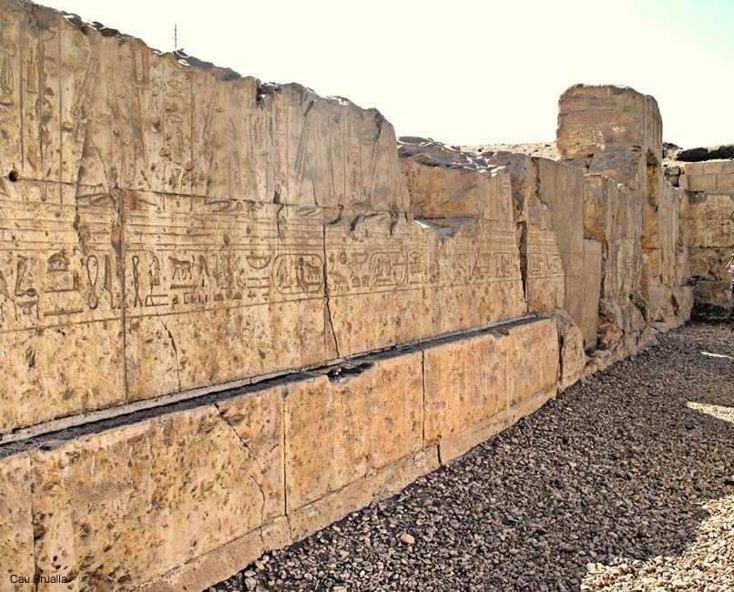 C'est une partie du mur Ouest côté nord avec à droite, la porte donnant sur la 2ème cour et à gauche, plusieurs des filles de Ramsés représentées.. La première est probablement Nebetiounet ( nb.t iwn.t) suivie de Ourenra Suivent d'après David (1973, page 18), Nefertary, Isisneferet (cf. ci-dessous). Entre les 2ème et 3ème niches, les noms sont perdues. Entre la 3ème niche et la porte de côté, Henoutiounou, Nebouherkhsebed, Shepes-herites, Henout(?) et un nom perdu. |