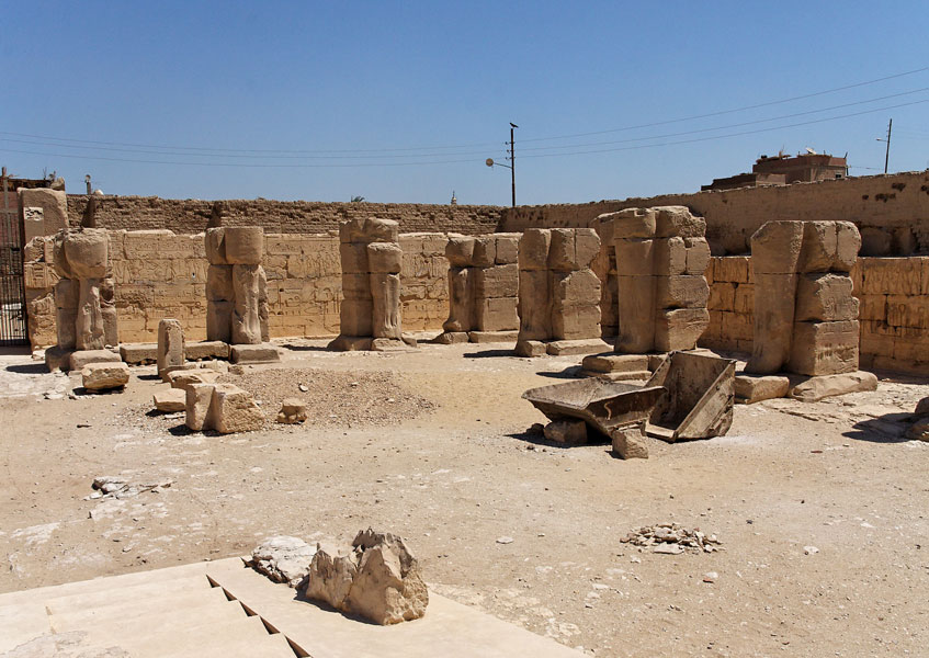 Les retes de piliers osiriaques du roi se dressent ègalement dans cette deuxième partie. Sur les murs, une grande procession se développe, avec en tête un serviteur portant une statue du roi.
