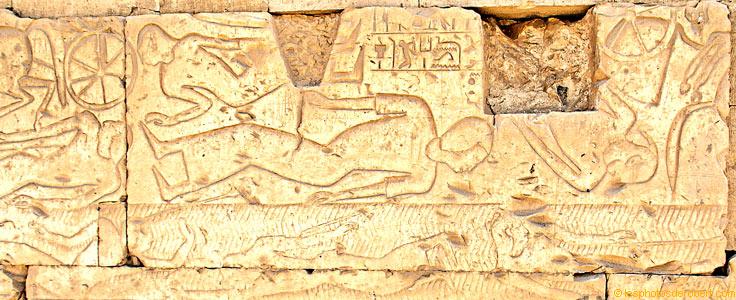 Les corps des ennemis hittites morts flottent dans l'Oronte.