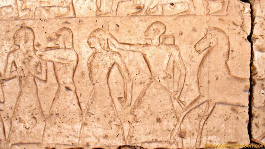 Les prisonniers sont poussés pour être menés devant Ramsès.