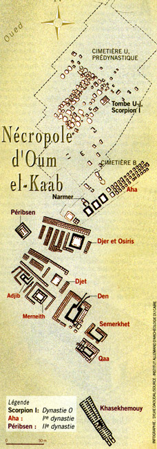 C'est à travers les fouilles dans la nécropole d'Umm-el-Qab à Abydos que l'Histoire de la royauté commence à se révéler. C’est l'étude de la grande nécropole d'Umm