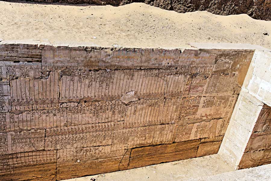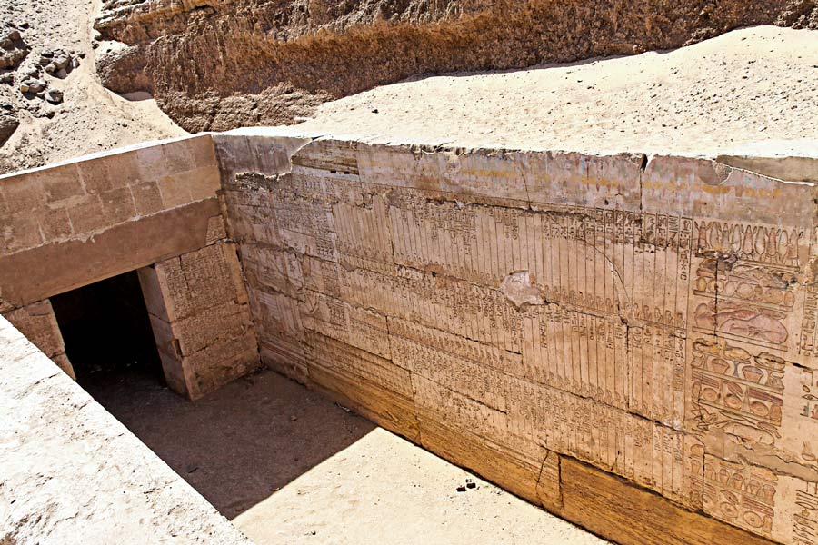 Le mur sud-ouest de l'Ante Room (Porter et Moss) est décoré des chapitres du Livre des Morts traitant des noms d'Osiris (chapitre 141 à 143) (Murray, 1904). Ces chapitres sont inscrits sur trois registres. Le registre du haut donne une liste des divinités. Les deux registres du bas concernent Osiris, ses différents épithètes et ses identifications : Khentiamenthou, Ounennefer, Orion, ... A droite, Mérenptah est représenté devant une grande table d'offrandes (visible très partiellement ici, voir ci-dessous). A gauche, une scène montre Horus vivifiant Osiris.