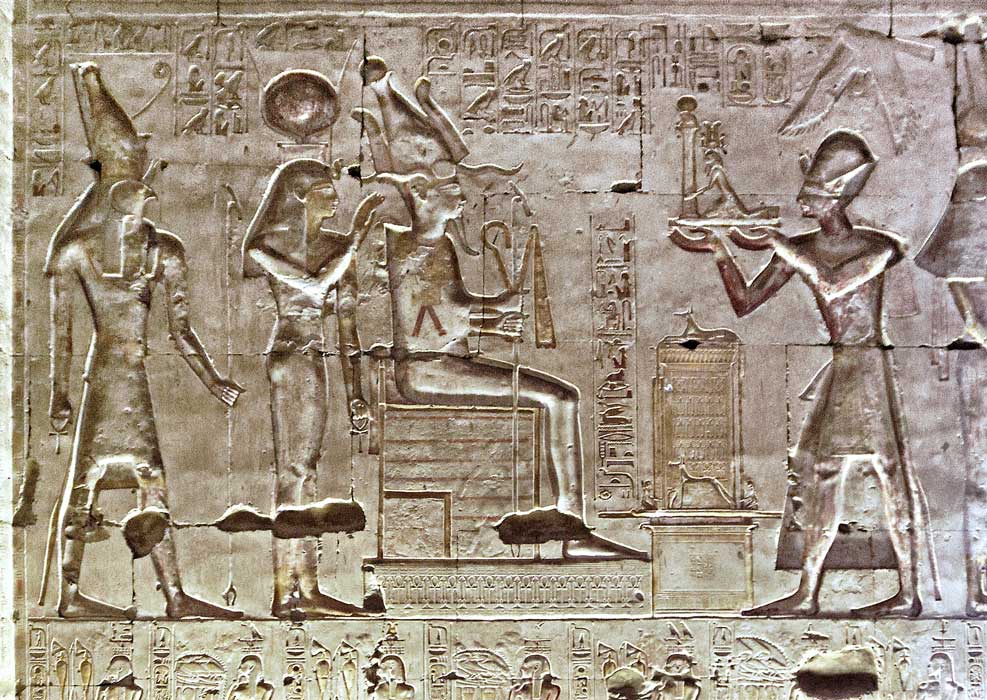 Paroi nord de la 1ère salle hypostyle : l'offrande à Osiris