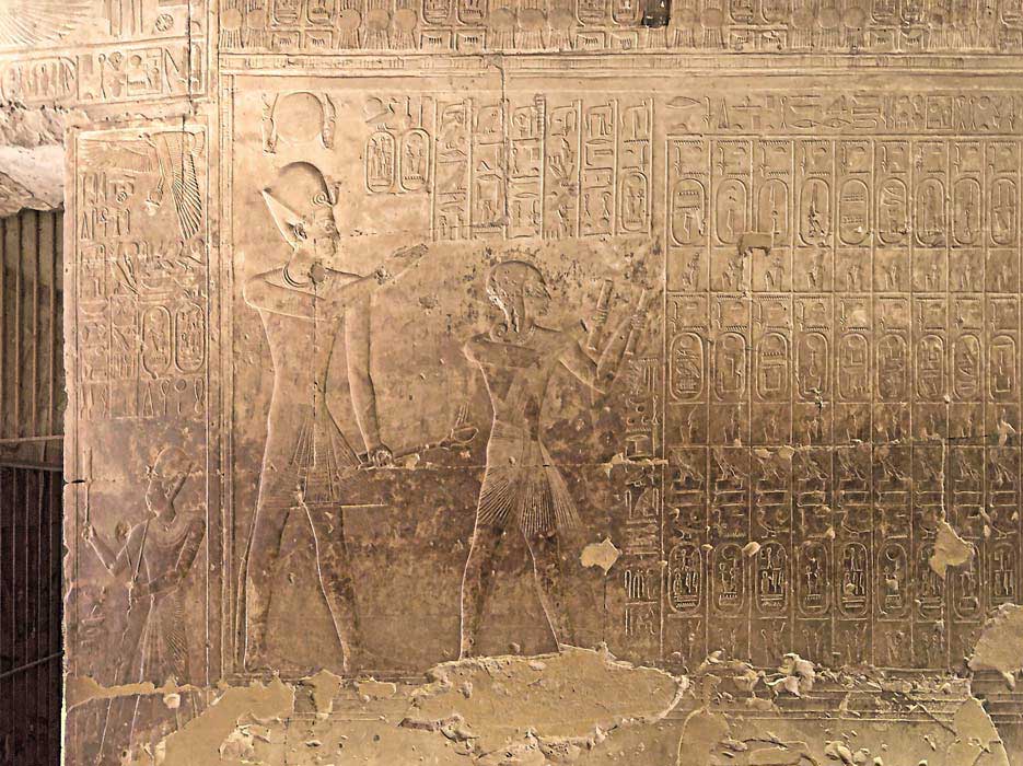 C'est une des scènes les plus célèbres du temple de Sethy. Sur ce panneau, .Séthy 1er et le futur Ramsès II présentent une table donnant les noms de 76 rois commençant par Ménés et finissant par Menmâtrê. On sait que plusieurs dynasties de rois manquent dans cette liste et que, dans la XVIIIème dynastie, les rois de la période dite armanienne ont été omis. Cette liste ne doit pas être interprétée, probablement comme une liste historique, mais plutôt comme la liste de rois auxquels Sethy et Ramsès veulent rendre hommage en tant qu'ancêtres.