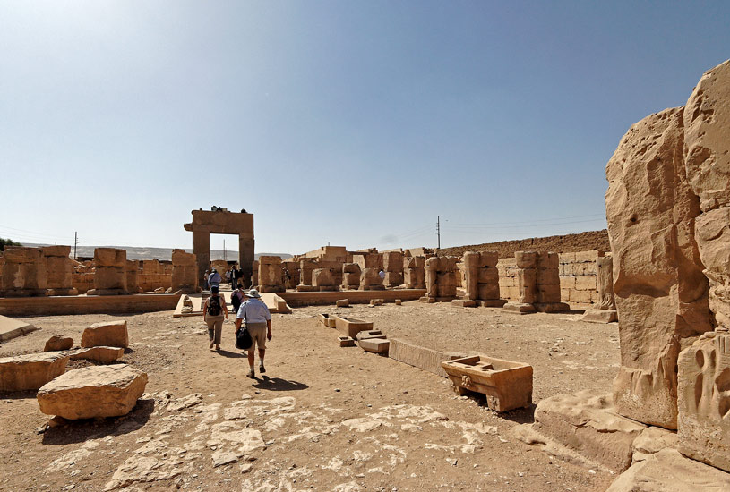 from the door. On the right, you can see the rests of osiride pillars.The court is very damaged , except the north