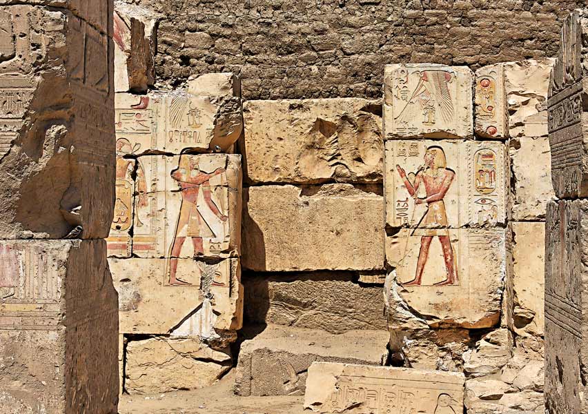 the Nine Bows, are represented here by asian bearded captives: to the left extreme, the Tehenou (the present Lybia); then Naharin,