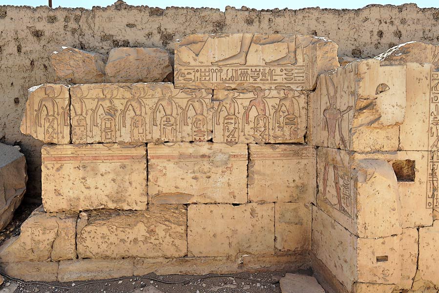 On the west wall, the Nine Bows are depicted by Africans. On the right, the country of Kush, the southern Nubia and to the left , Ouaouat, the Nubia of the north (Menu, 2003). On the right, the door of the O chapel .