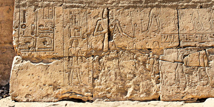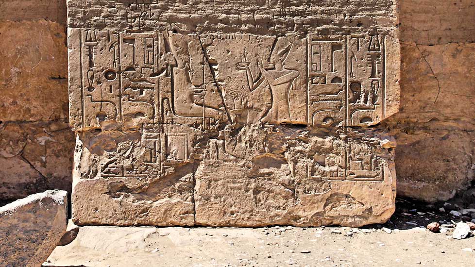 This scene is located on the right at the pylon base. The ka carries above his head the king's name