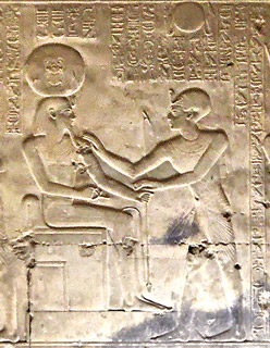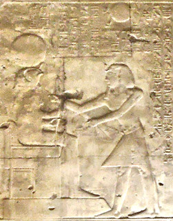 Scene 14 : Ripping off the ointment With a pot in the left hand, the king with the finger on the uraeus removes the ointment that has been put the eve |