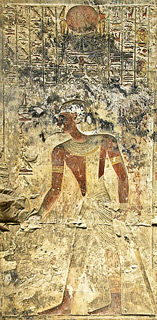 This scene is in principle on the east wall , in top on the left. It is damaged in the four chapels where it is. Here the chapel of Isis. |