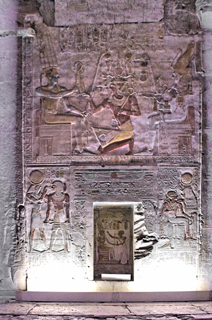 from Amun. Behind him, stands Osiris. The scene is bound to the rituals of the coronation.