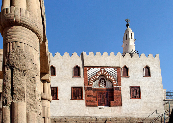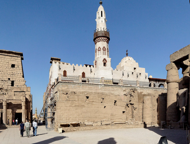 Cette mosquée est dédiée au Cheikh Abou el-Hagag, que l'on dit descendre du Prophéte. Chaque année, sa fête est célébrée par des porteurs transportant un bateau sur leurs épaules, comme lors de la Fête d'Opet. C'est un lieu saint qui n'a pu être démonté.