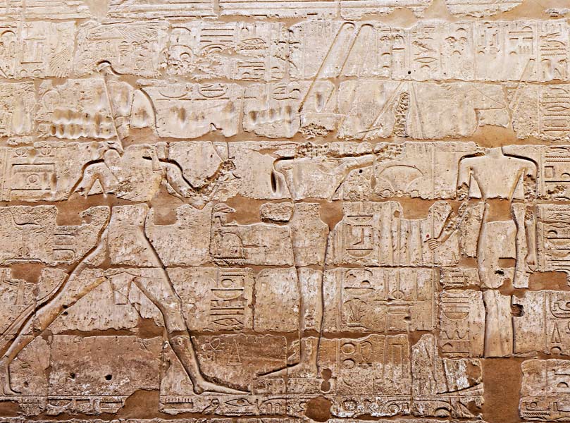Scènes du mur ouest : le roi Ramsès II encense Amon et Mout.