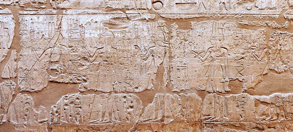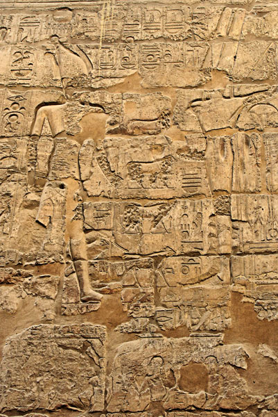 Le roi Ramsès II méne 4 veaux vers le dieu Amon. Ce rite des 4 veaux a été représenté pour la première fois dans la pyramide de Sahouré de la Vème dynastie à Abousir, mais il est sûrement plus ancien. Il s'agit d'un rite