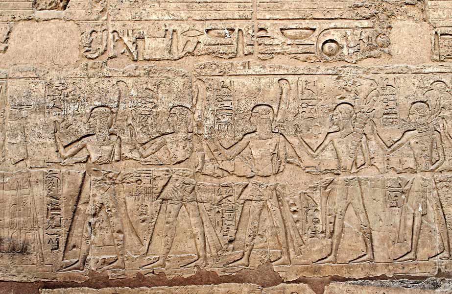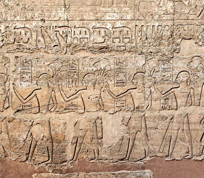 Après le défilé des filles, le défilé des 17 fils de Ramsès II se déroule sur le mur sud.