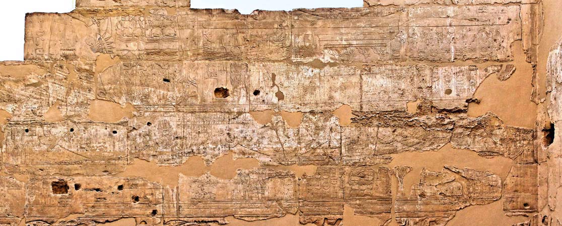 Cette scène se trouve sur le mur côté ouest. En haut à gauche, le pharaon encense une table d'offrandes et verse une libation. On devine devant lui un grand socle sur lequel devait être posée une barque. En-dessous, les petites barques d'Amon et de Mout sont posées sur des socles. La 3ème barque, celle de Khonsou, est à peine visible sur la droite Dans ce plan large, les reliefs sont peu visibles, suite à la dégradation du mur.