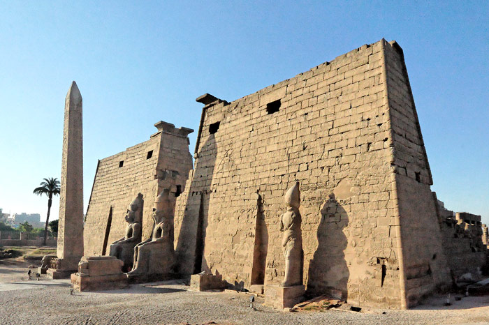 orne maintenant la place de la Concorde. On aperçoit encore son socle. Plusieurs statues de Ramsès II sont placées devant le pylône. Sur ses murs, le pharaon fit représenter la bataille de Qadesh. Une gravure sur un mur de la première cour offre une représentation de l'état d'origine du pylône