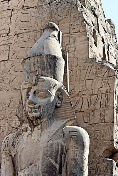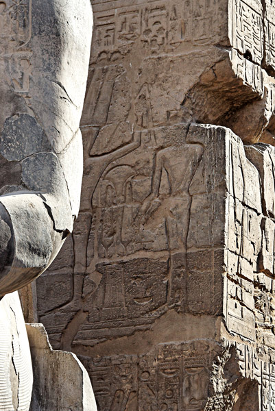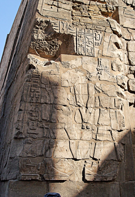 Deux petites scènes sur le pylône gauche derrière la statue de Ramsès II :