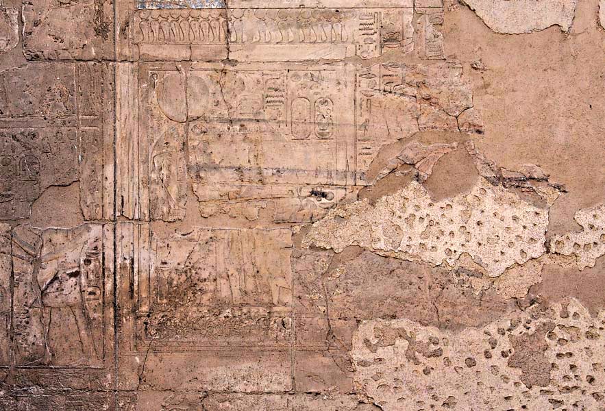 En dessous, sur le même mur, c'est Rê qui se trouve derrière le roi, dont la silhouette est presque effacée.