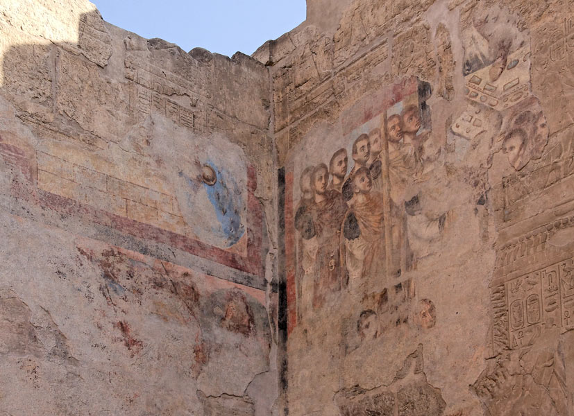 L'état de la restauration en mars 2009, sans doute définitive. Ces peintures représentent des fonctionnaires romains.
