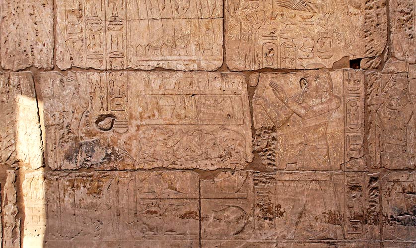 Le roi Amenhotep III est devant une table d'offrandes comportant des animaux sacrifiés, offrandes faites à Amon.