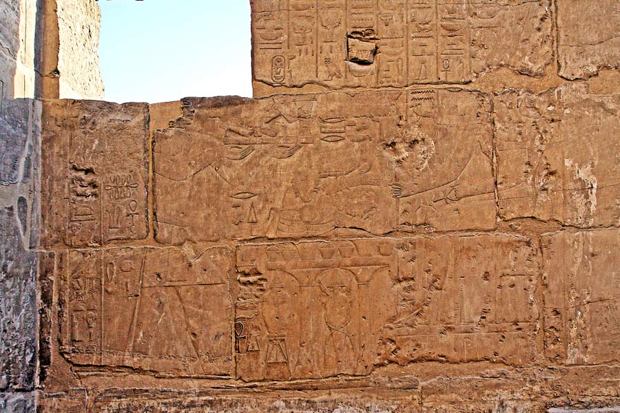 Mur sud : le roi offre à Amon un plateau sur lequel un petit roi lui présente un récipient d'huile.