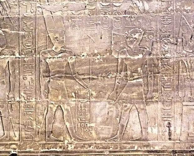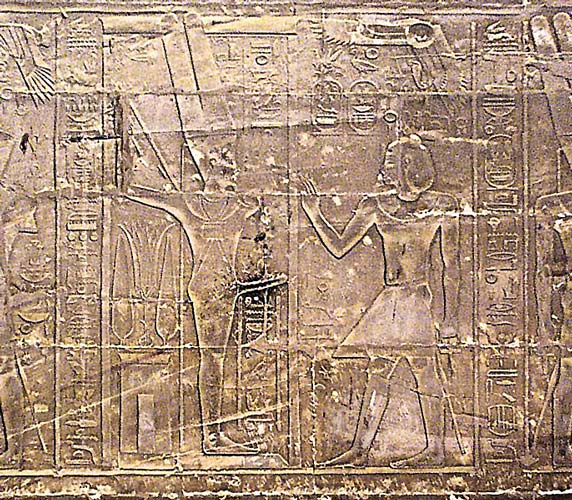 Alexandre ouvre la chapelle de Amon-Rê Kamoutef. Derriére le dieu, représenté comme Min, on peut voir la salade, signe de fertilité.