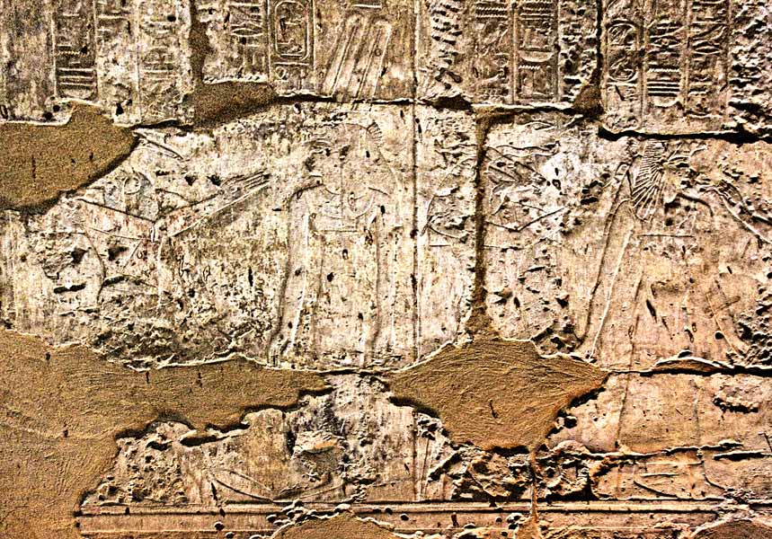 Dans la scène de gauche, le dieu Thot annonce la bonne nouvelle à la reine. A droite, Khnoum et une déesse (Hathor, Isis?) amènent la reine vers la salle d'accouchement. Notez le ventre rebondi de la reine.[retour théogamie]