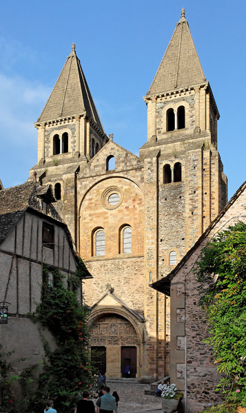 Elle abrite le bas-relief du Jugement dernier (voir la partie tympan). Elle est percée de deux baies et d'un oculus. Un fronton triangulaire la couronne. Deux puissantes tours entourent sa partie centrale : elles ont été surélevées au XIXème siècle et coiffées alors de structures pyramidales en pierre. Les différentes couleurs des pierres complétent la décoration.