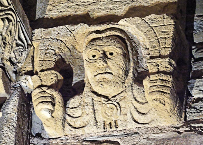 La physionomie de ces sonneurs (visages carrés, cheveux bien peignés) est caractéristique de l'atelier de sculpture du temps de l'abbé Begon. Ces sculptures sont très différentes de celles de l'atelier qui créa le tympan, nettement plus détaillé. L'olifant était utilisé pour communiquer durant les combats.