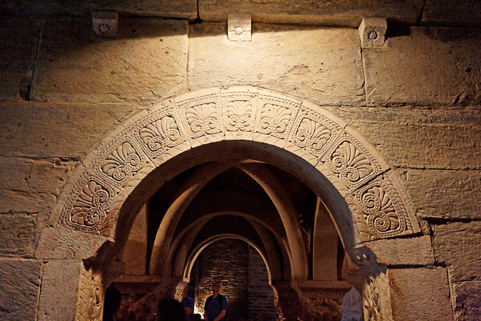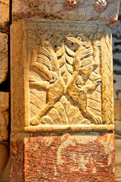 | La façade du côté de l'autel est moins richement sculptée. De ce côté ci, se tenaient les moines et les fidèles se tenaient de l'autre côté, avec les sculptures devant les yeux pour leur édification. |