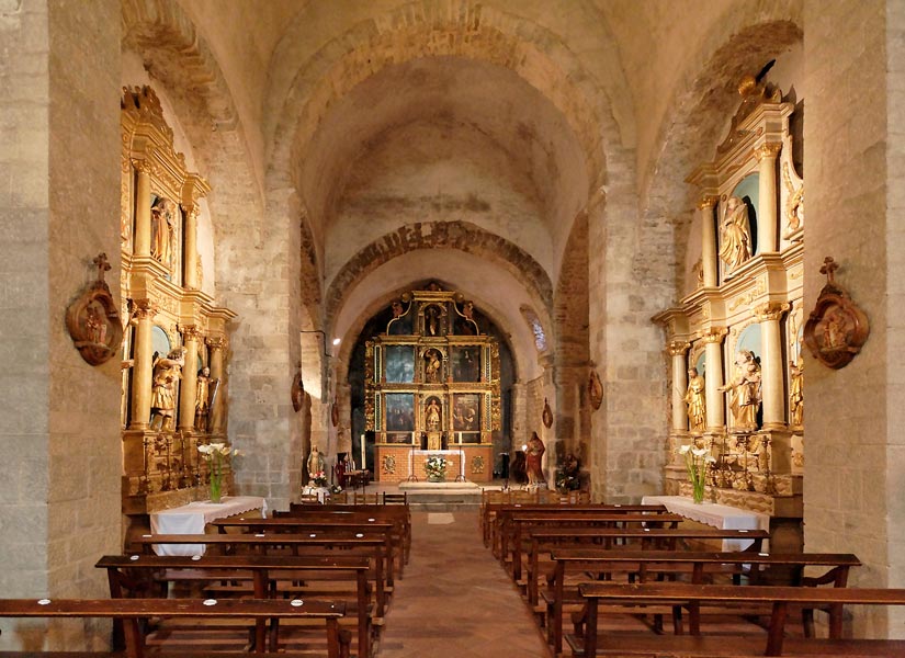 L'église est dédiée à l'archange Michel. Son plan est en croix latine. Dans la première moitié du XIIème siècle, son voûtement engendra quelques modifications. Le mobilier actuel est très riche et comporte de nombreux rétables allant du XVIIème au XIXème siècles. Le bénitier est celui de l'église primitive. Le retable central a été réalisé entre 1605 et 1638 autour de Saint Genis. Vous pouvez en voir des détails en cliquant ici.
