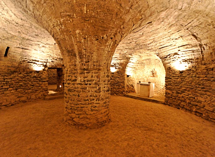 les chapelles de Raphaël et de Gabriel. Elle est surmontée par la chapelle de la Trinité. Tout cet ensemble est l'oeuvre de l'abbé Oliba au XIème siècle.